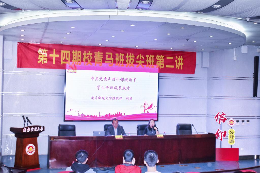 黨史是最好的教科書,是中國共產(chǎn)黨人賡續(xù)傳承的風向標,是持久深沉的精神動力。10月30日晚上七點,我校在行政樓二樓報告廳舉行“中共黨史和好干部視角下學生干部成長成才”專題培訓講座,南京郵電大學黨委組織部副部長劉挺老師主講,校團委副書記張蔚偉主持培訓會。