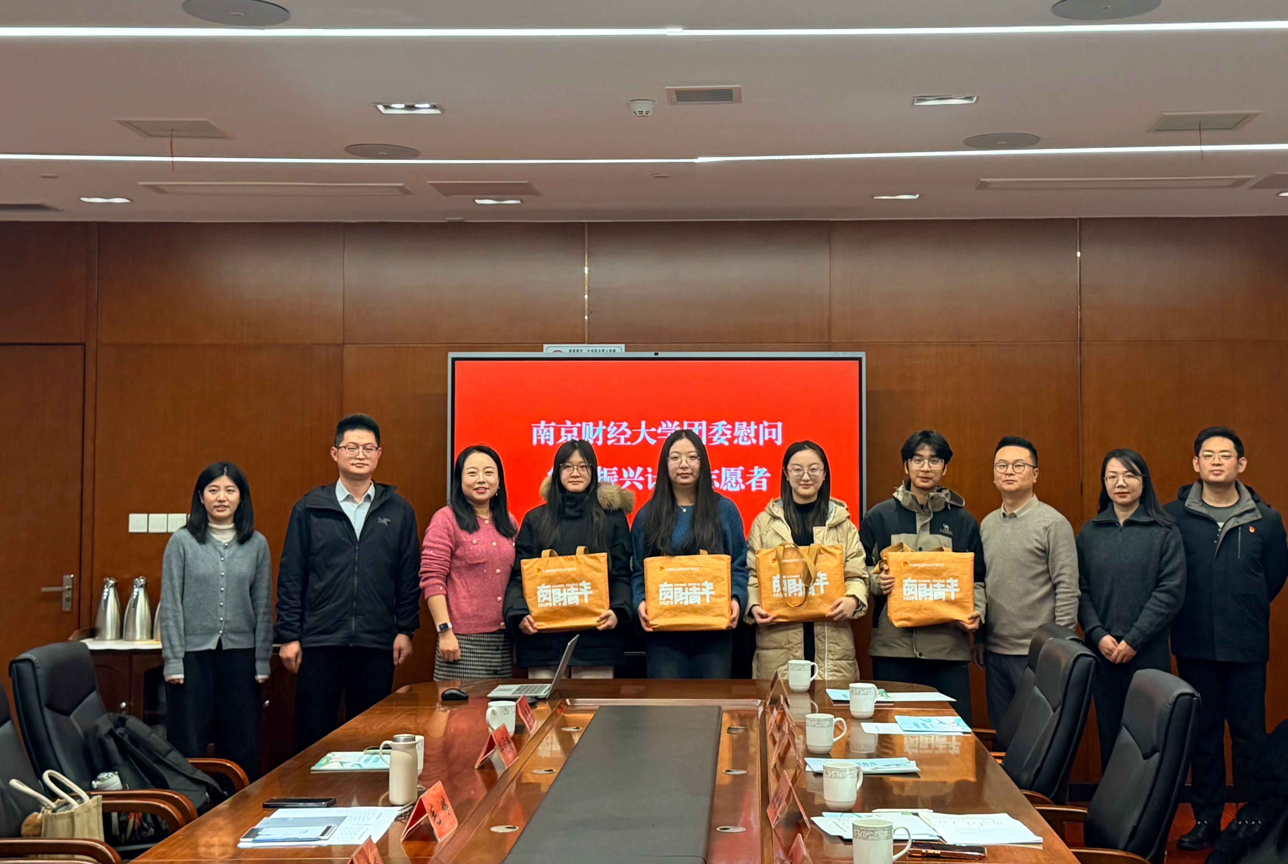 為深入學(xué)習(xí)貫徹黨的二十屆四中全會(huì)精神和關(guān)于全面推進(jìn)鄉(xiāng)村振興、大學(xué)生就業(yè)工作的重要部署,1月7日,校團(tuán)委一行分別赴揚(yáng)州市廣陵團(tuán)區(qū)委和邗江團(tuán)區(qū)委看望了在該地服務(wù)的我校“江蘇省大學(xué)生志愿服務(wù)鄉(xiāng)村振興計(jì)劃”志愿者,關(guān)心了解同學(xué)們的工作和生活情況,并送上學(xué)校的慰問(wèn)和祝福。校團(tuán)委書(shū)記張蔚偉,揚(yáng)州市邗江區(qū)楊壽鎮(zhèn)黨委副書(shū)記、鎮(zhèn)長(zhǎng)周舟,揚(yáng)州市廣陵團(tuán)區(qū)委書(shū)記王貴芝,揚(yáng)州市邗江團(tuán)區(qū)委書(shū)記魏燁凡等相關(guān)負(fù)責(zé)同志,我校10名志愿者代表參加活動(dòng)。