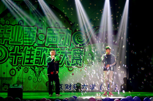 舞臺迸發(fā)夢想,歌聲詮釋音樂。2013年5月17日晚,由校團委、福建路校區(qū)學(xué)生會主辦的“畢業(yè)季·聲動十佳”第十屆校園歌手大賽總決賽在福建路校區(qū)大禮堂華麗上演。校團委大學(xué)生藝術(shù)實踐中心的馮璀老師、葛奕雯老師,紅山學(xué)院大學(xué)生藝術(shù)中心的胡薪蘄老師,以及第二屆江蘇省高校十佳歌手季軍南京財經(jīng)大學(xué)第九屆十佳歌手冠軍胡耕瑋、南京財經(jīng)大學(xué)第十屆十佳歌手冠軍李瑞麒擔(dān)任本次比賽的評委。