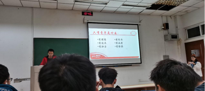 最后,團支書向大家提出倡議,從身邊小事做起,爭做“有理想、有追求、有擔當、有作為、有品質(zhì)、有修養(yǎng)”的四有青年,一起為中華民族的偉大復興添磚加瓦。