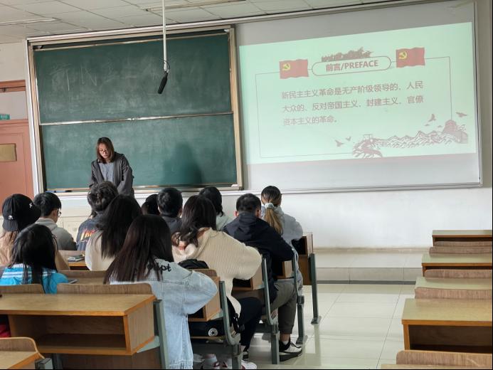 本次活動(dòng)主要分為三個(gè)部分。首先,金妍同學(xué)為同學(xué)們講述新民主主義的開端——五四運(yùn)動(dòng)和中國共產(chǎn)黨的成立。接著,金妍同學(xué)為同學(xué)們具體講述新民主主義革命的四個(gè)階段,包括興起時(shí)期、土地革命時(shí)期、抗日戰(zhàn)爭時(shí)期以及解放戰(zhàn)爭時(shí)期,同學(xué)們對新民主主義革命有了更多的了解。最后,金妍同學(xué)講述了新民主主義革命產(chǎn)生的國內(nèi)與國外影響,通過新民主主義革命的勝利,中國歷史從此進(jìn)入了由新民主主義向社會(huì)主義的過渡時(shí)期。