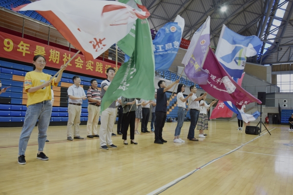 授旗儀式上,各學(xué)院團(tuán)委老師依次上臺接受領(lǐng)導(dǎo)授旗,社會實踐學(xué)生代表會計1801班張文龍帶領(lǐng)現(xiàn)場全體實踐成員莊嚴(yán)領(lǐng)誓。